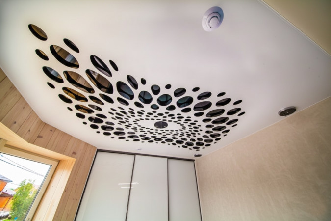 Apply – новшество в дизайне. Представляет собой натяжные потолки, декорированные резными узорами. Рисунки могут быть выполнены в виде отдельных элементов, а могут занимать всю площадь полотна. Данный способ позволит добиться особой выразительности за счет элегантного необычного исполнения, перепадов света и особенностей используемого материала.